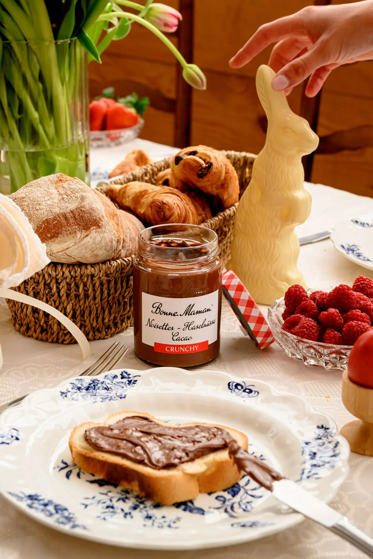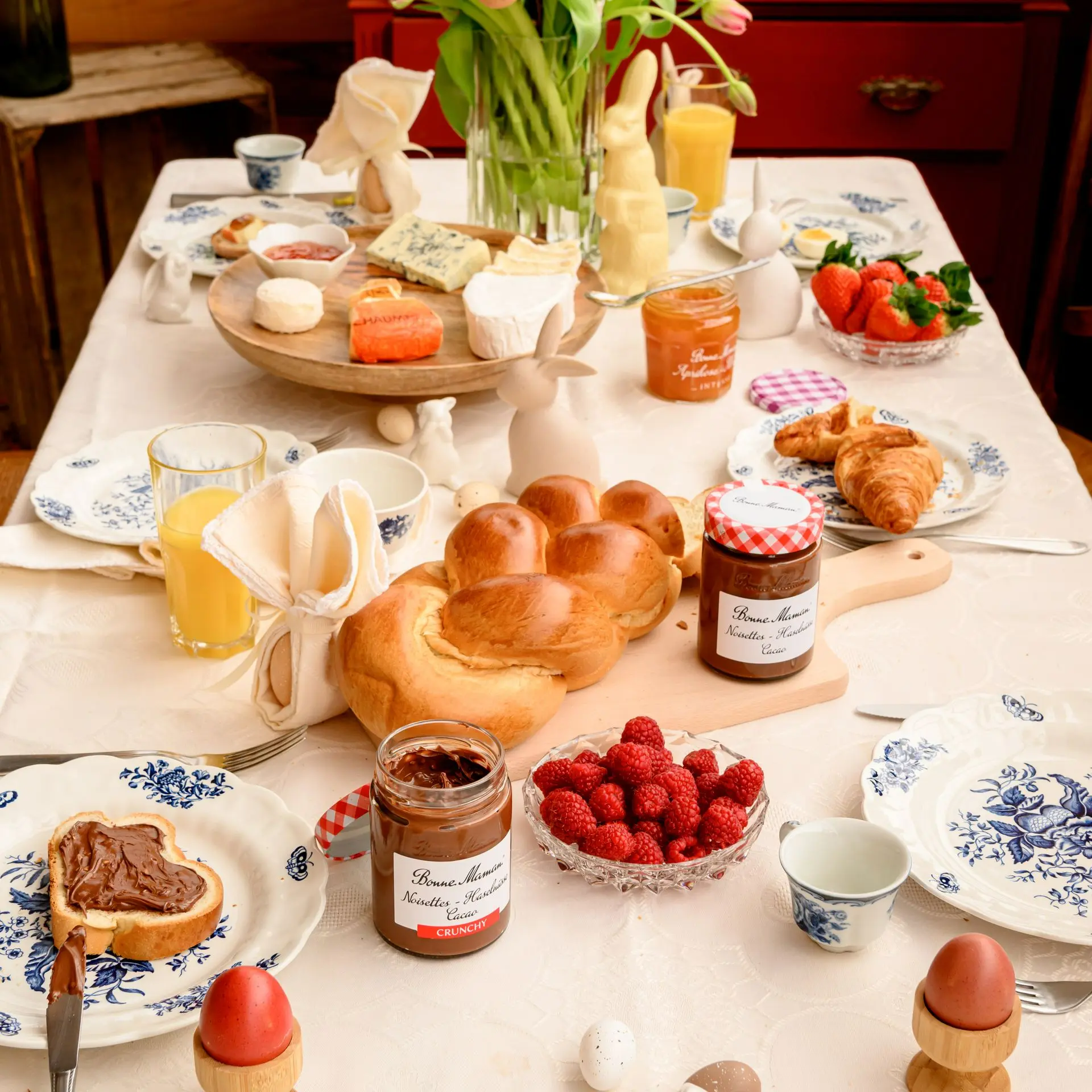 La chasse aux œufs vient tout juste de s’achever : place maintenant à un délicieux brunch de Pâques en famille ! Au menu de ce moment gourmand : de généreuses tranches de tresse maison, sublimées par des confitures fruitées et de délicieuses pâtes à tartiner… de quoi ravir toutes les papilles et partager un doux instant de convivialité autour de la table.